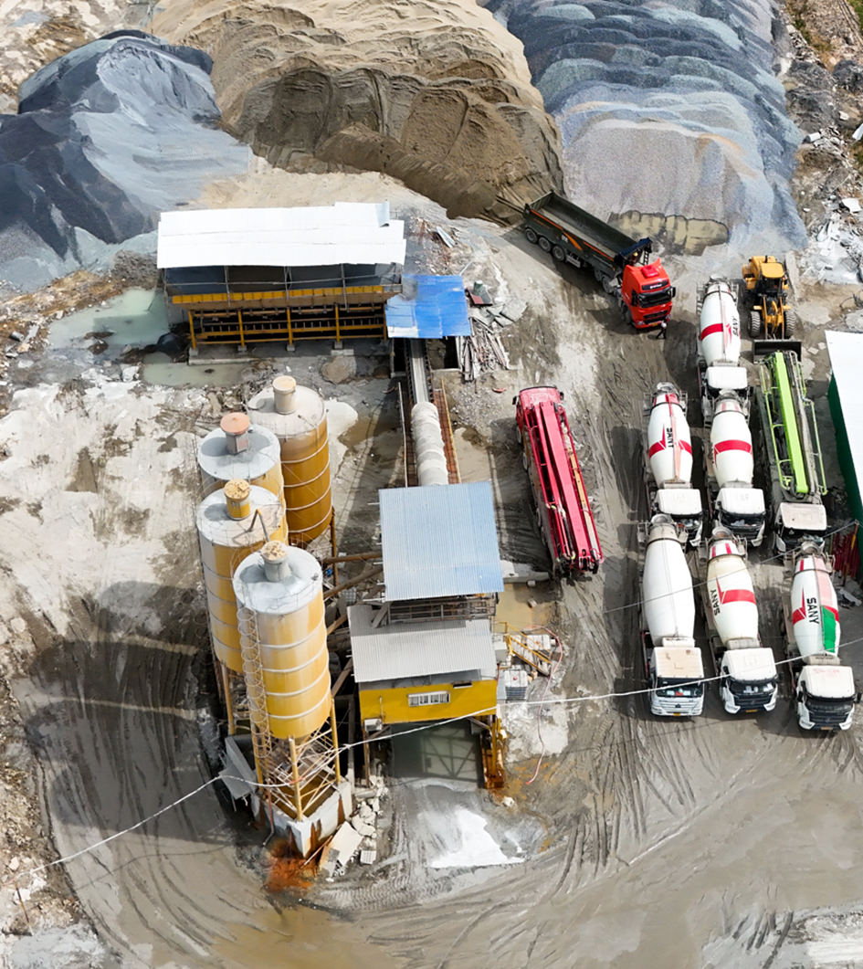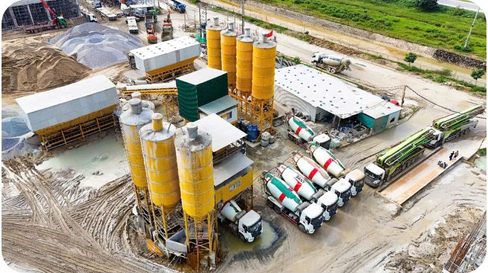 Ngoài ra, hệ thống trạm trộn bê tông tươi với công suất 150 m³/giờ cũng đã đi vào vận hành, sẵn sàng cung ứng liên tục cho các công trình tại địa phương và khu vực lân cận.