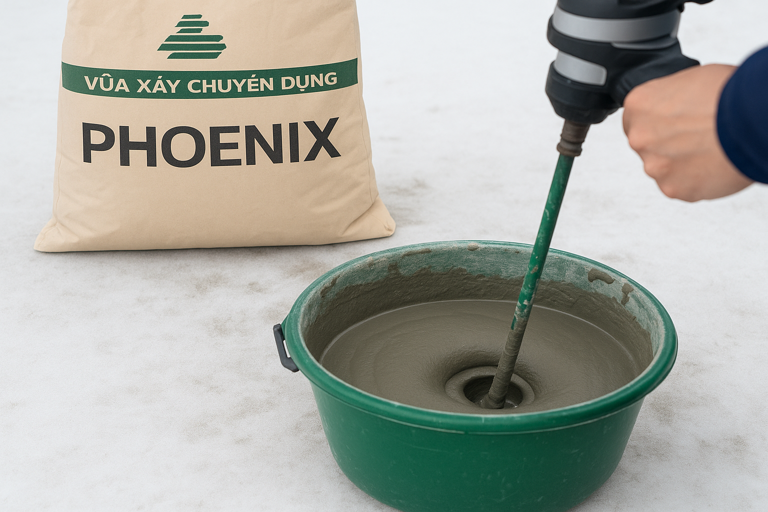 Dòng vữa chuyên dụng của Phoenix được nghiên cứu và phát triển để thi công đồng bộ với gạch AAC và cả gạch truyền thống. Vữa khô Phoenix có đặc tính siêu bám dính, định mức thấp, khả năng chống thấm tốt và thi công dễ dàng. Nhờ đóng bao sẵn với công thức tối ưu, sản phẩm giúp giảm hao hụt vật liệu, tiết kiệm nhân công và giữ sạch công trường, từ đó nâng cao hiệu quả và chất lượng hoàn thiện.